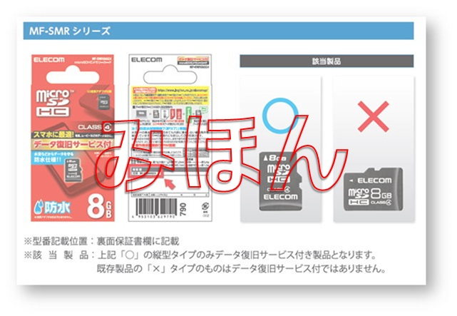パッケージや製品本体に「データ復旧サービス付き」と表示されているSDカード・メモリ製品について、エレコムは保証期間内であれば1回に限り、無料でデータ復旧サービスを提供します。