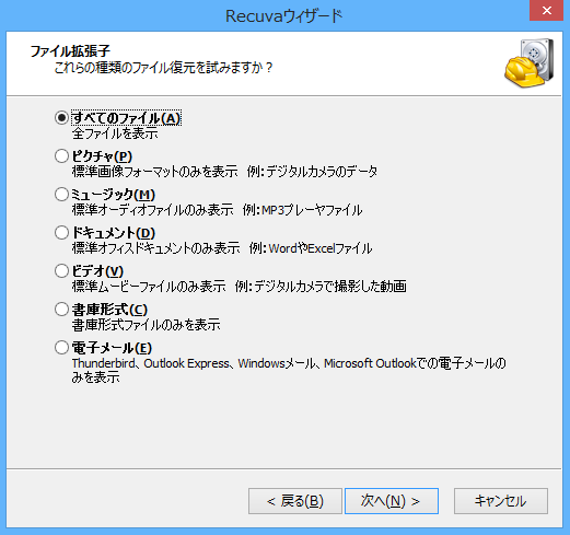 ステップ 1. Recuvaを起動します。ウィザード画面で「次へ」をクリックします。