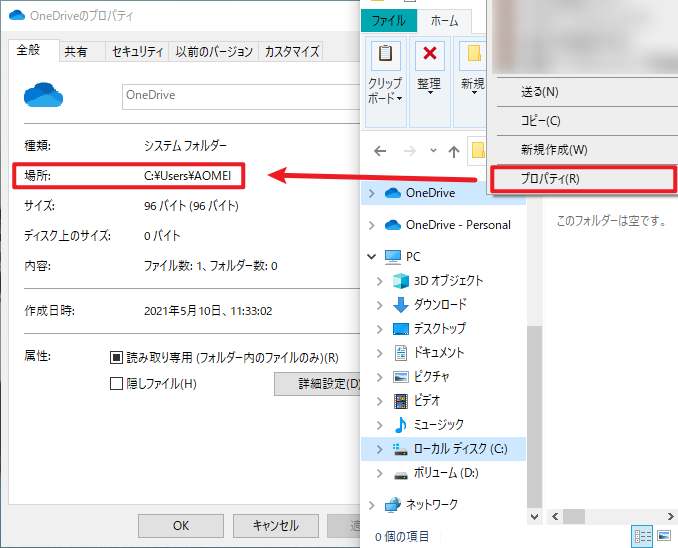 2. パソコンのOneDriveフォルダから削除した場合