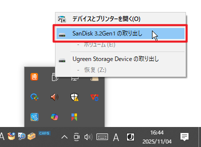 使用後にUSBメモリをそのまま抜くと、データやファイルシステムが破損する恐れがあります。取り外す際は、必ず「ハードウェアの安全な取り外し」機能を利用してください。
