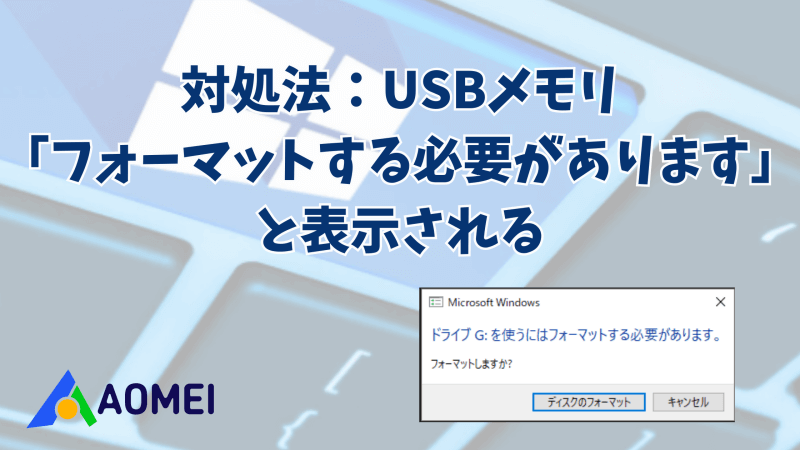 USBメモリに「フォーマットする必要があります」と表示されても、すぐにフォーマットしないでください。