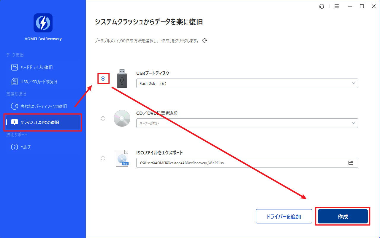 AOMEI FastRecoveryでブータブルディスクを作成する手順